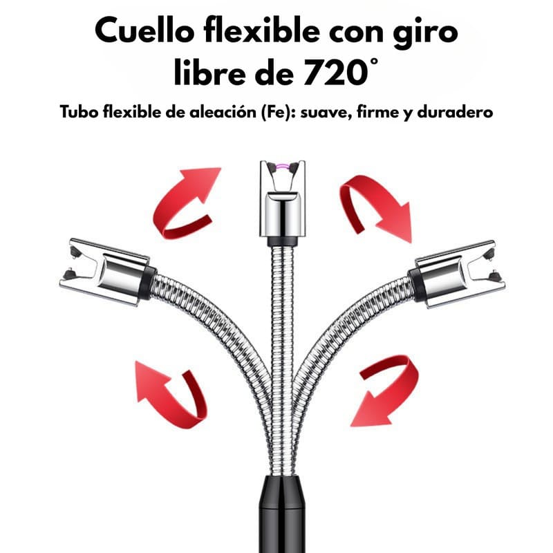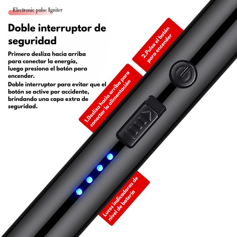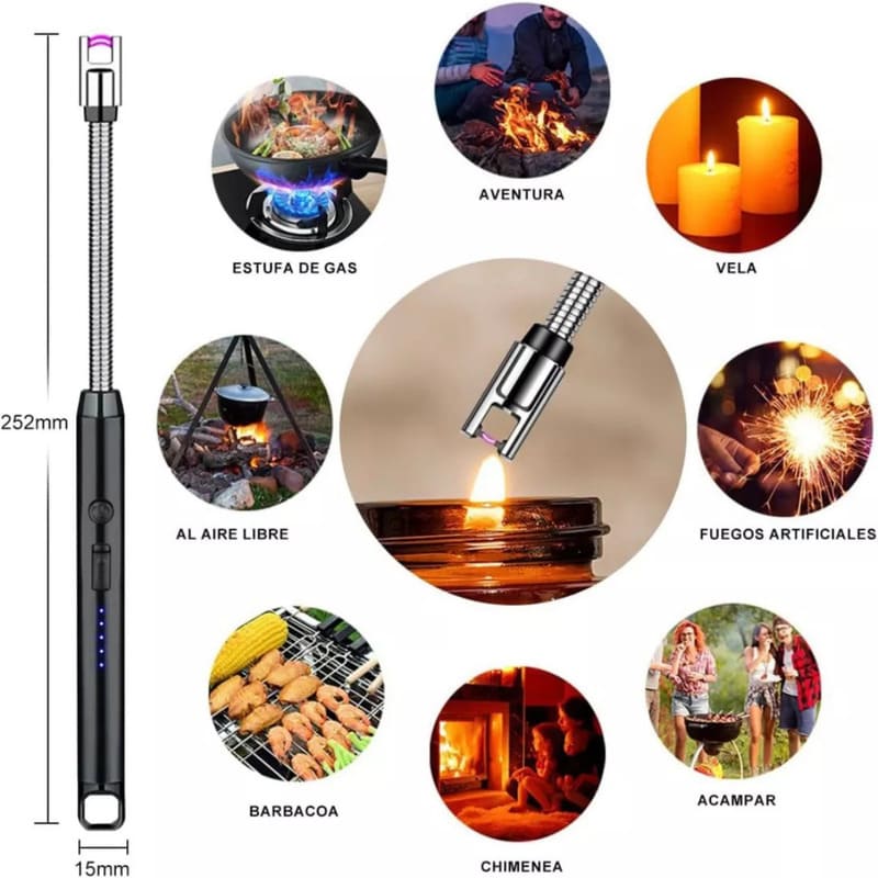 El Chispero Encendedor Plasma Recargable USB-C X2U combina diseño moderno y potencia en un formato práctico de 25.2 cm x 1.5 cm. Su cuello flexible y sistema antiviento te permiten encender velas, parrillas o estufas con total seguridad y sin gas. ¡Recargable, ecológico y siempre listo para usar!