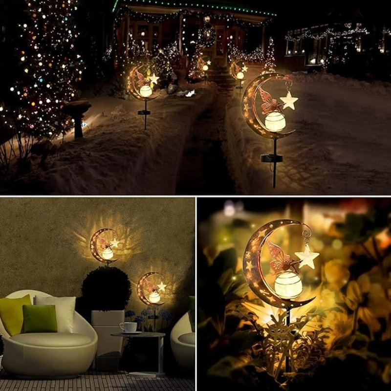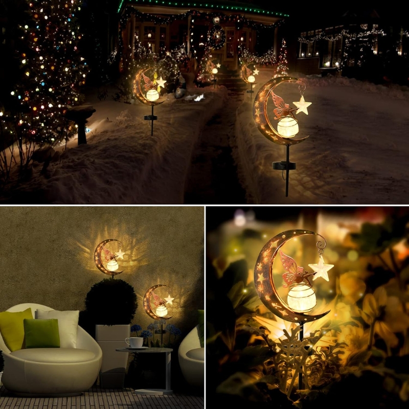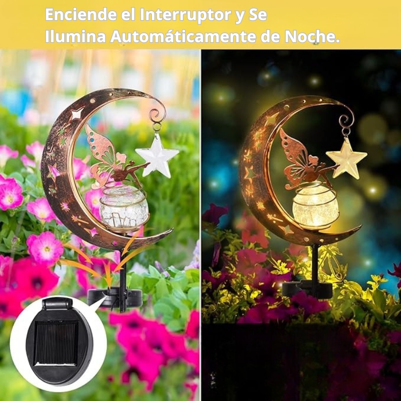 Luna en hierro forjado + estrella central luminosa de vidrio de polisilicio. Refleja suavemente la luz cálida, aportando un efecto visual encantador.