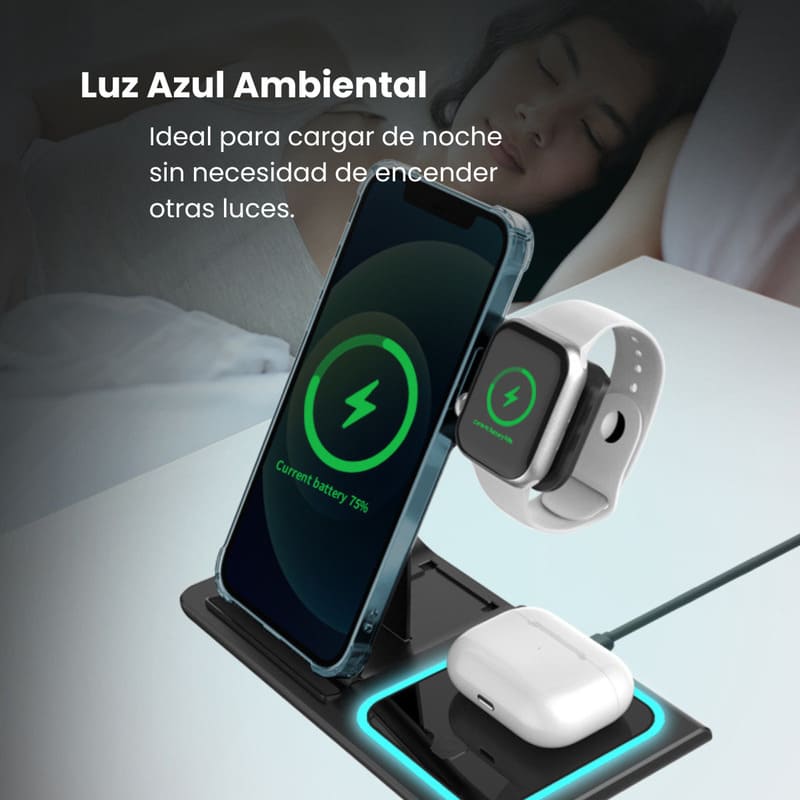 Incluye iluminación azul suave, perfecta para usarlo como luz nocturna sin alterar tu descanso.