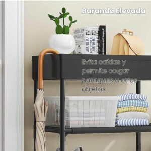 Evita caídas de objetos y permite colgar paraguas, bolsos o accesorios. Perfecta para mantener todo organizado y accesible.