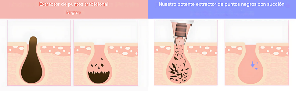 | Eficiencia | Elimina impurezas con succión de alta precisión y sin dolor. | Extracción manual puede causar irritación y no es 100% efectiva. |