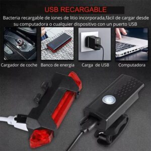 Kit Luces LED Bicicleta USB Delantera y TraseraKit Luces LED Bicicleta USB Delantera y Trasera