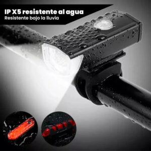 Aumenta tu seguridad en bici con este kit LED recargable vía USB. Luz delantera 300 lúmenes y trasera de 5 LEDs, resistente al agua y duradera hasta 12 horas.💡🚴‍♂️ ¡Ilumina tu camino y sé visible!