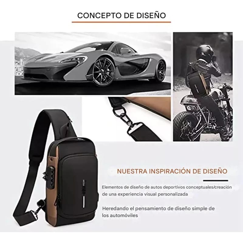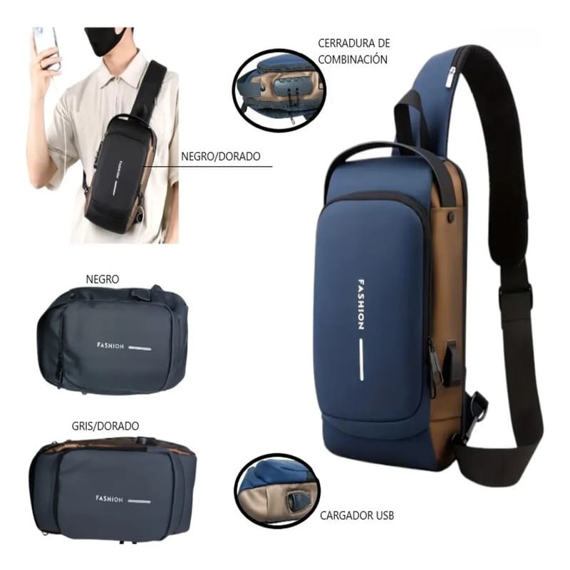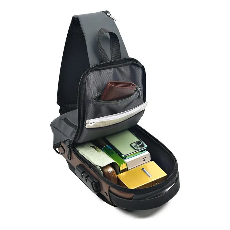 Incluye candado de combinación y cremalleras ocultas, garantizando máxima seguridad para tus objetos personales. Perfecta para uso urbano o al viajar.