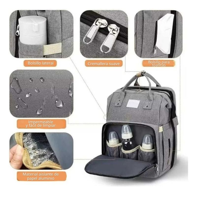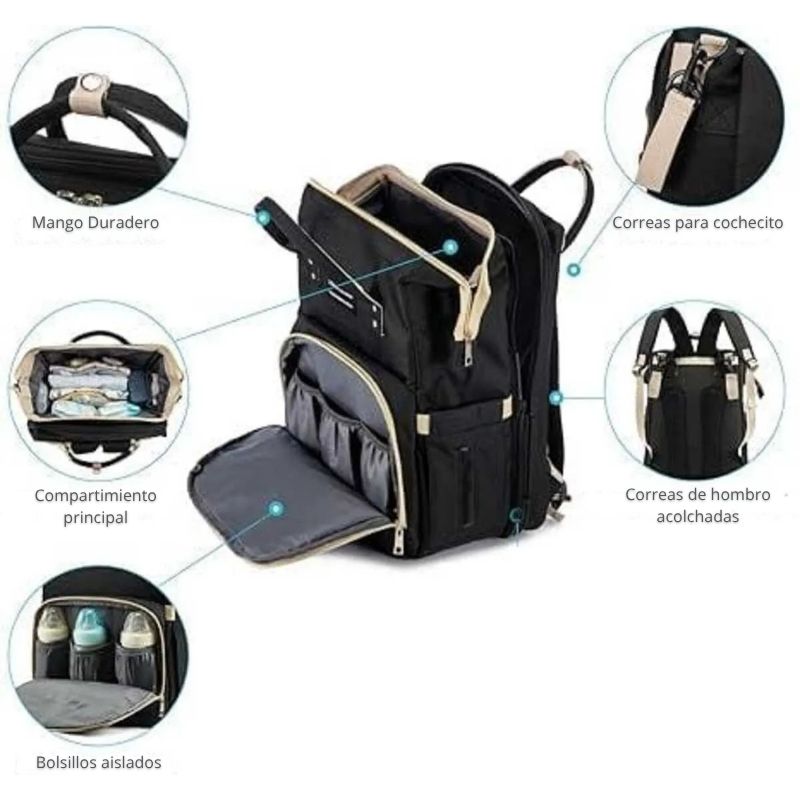 Incluye bolso, cambiador y cuna plegable, ideal para atender a tu bebé en cualquier momento y lugar.