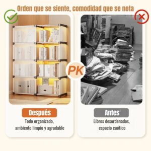 Con dimensiones compactas de 95,5 cm de alto, 84 cm de ancho y 28 cm de profundidad, esta estantería ofrece gran capacidad de guardado sin ocupar demasiado espacio. Ideal para departamentos, dormitorios infantiles, estudios u oficinas, aprovecha cada rincón de forma inteligente.