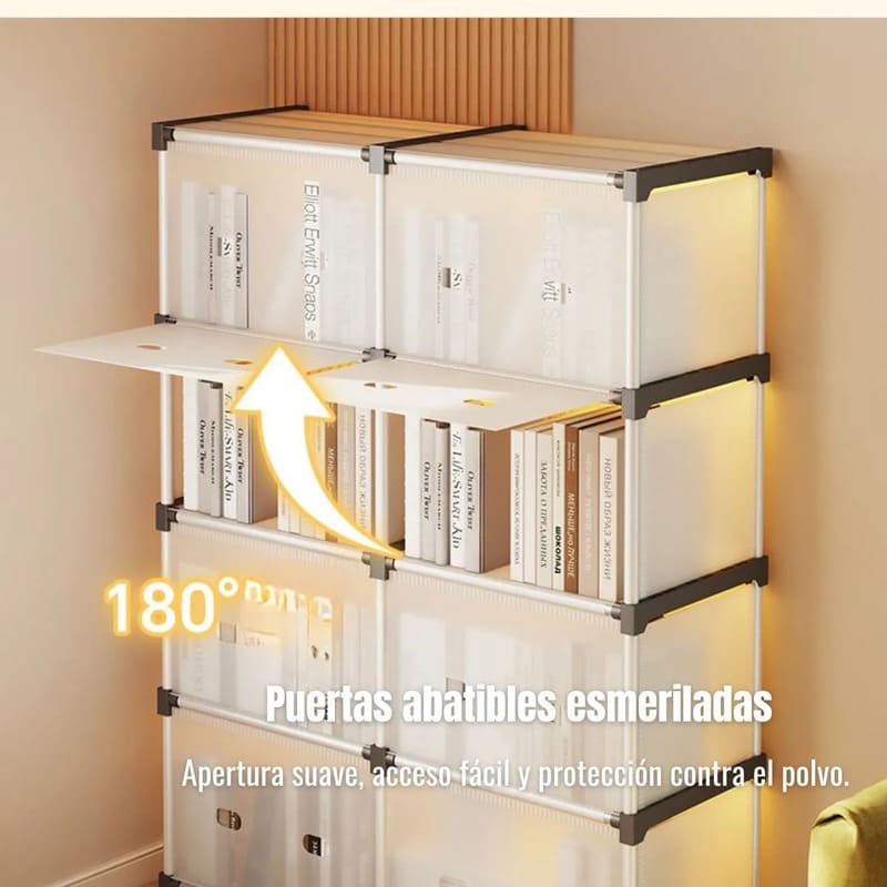 Cada cubo incluye puerta translúcida de PP, que protege del polvo, mejora el orden visual y oculta el contenido de forma elegante y discreta.