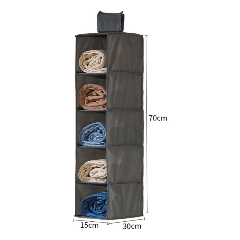 Con 70 cm de alto, 15 cm de ancho y 30 cm de profundidad, este organizador colgante aprovecha cada rincón del placard. Compacto pero sorprendentemente espacioso, te permite ordenar más en menos lugar y mantener todo siempre a mano. Ideal para sumar orden sin ocupar espacio en el piso.