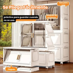 Organizador de Ropa Armario Plegable con Ruedas y Puertas Blanco | Práctico y Moderno