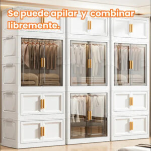 La solución perfecta para mantener tus prendas y accesorios en orden sin renunciar al estilo. Con un diseño elegante en color blanco y puertas frontales transparentes, este mueble combina practicidad y modernidad.