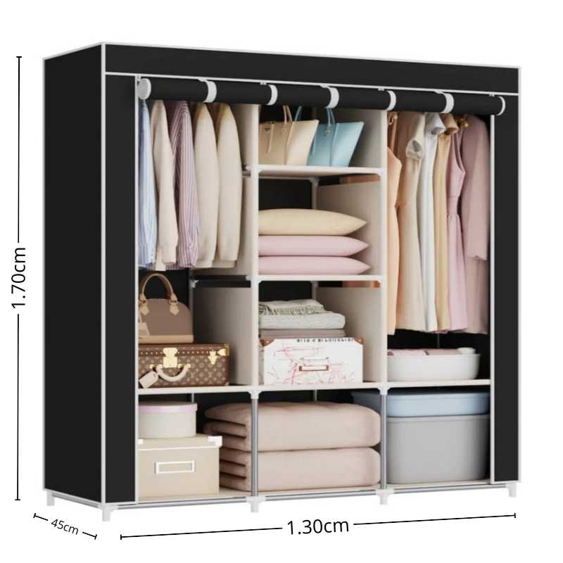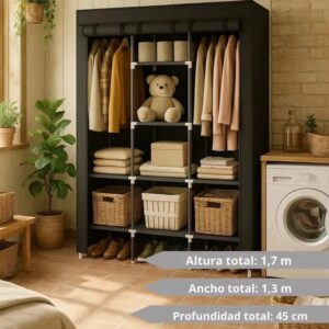 Con 1,70 m de alto, 1,30 m de ancho y 45 cm de profundidad, ofrece gran capacidad interna sin invadir el ambiente. Su diseño vertical permite aprovechar al máximo cada centímetro, logrando orden real incluso en espacios reducidos.
