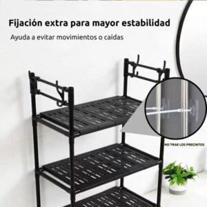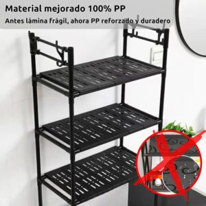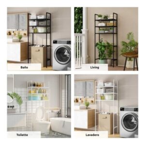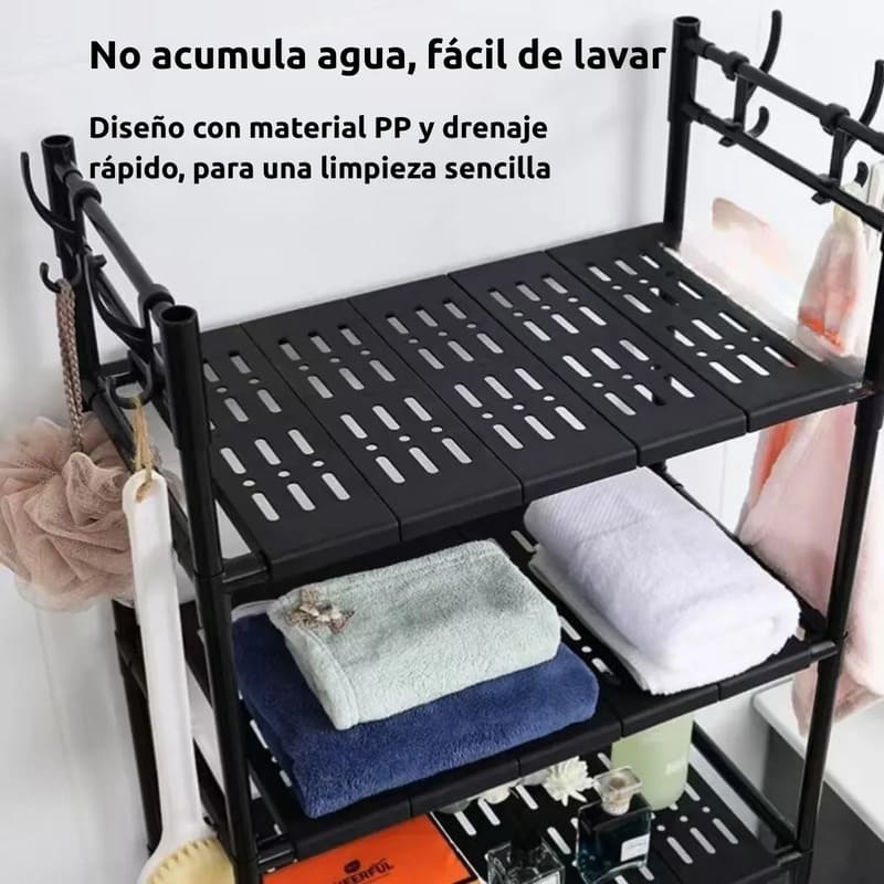 Cuenta con tres estantes amplios de plástico PP reforzado, ideales para organizar papel higiénico, toallas, productos de higiene, cosméticos y accesorios diarios.