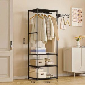 Integra barra para colgar y estantes inferiores para organizar ropa, pantalones, toallas, bufandas, cinturones o zapatos.