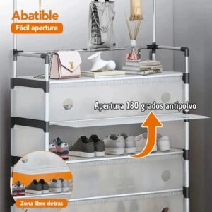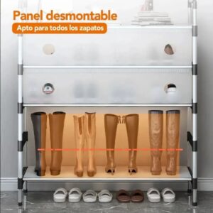 Con unas dimensiones de 170 cm de alto, 63 cm de ancho y 28 cm de profundidad, este zapatero aprovecha la altura para ofrecer gran capacidad de guardado sin ocupar demasiado espacio. Su diseño vertical permite organizar hasta 30 pares de zapatos, manteniendo el ambiente ordenado y visualmente prolijo.