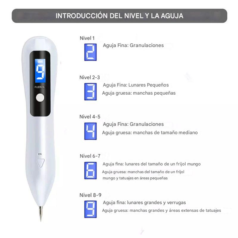 🔹 9 niveles de intensidad: Perfecto para eliminar desde manchas superficiales hasta lunares y verrugas.