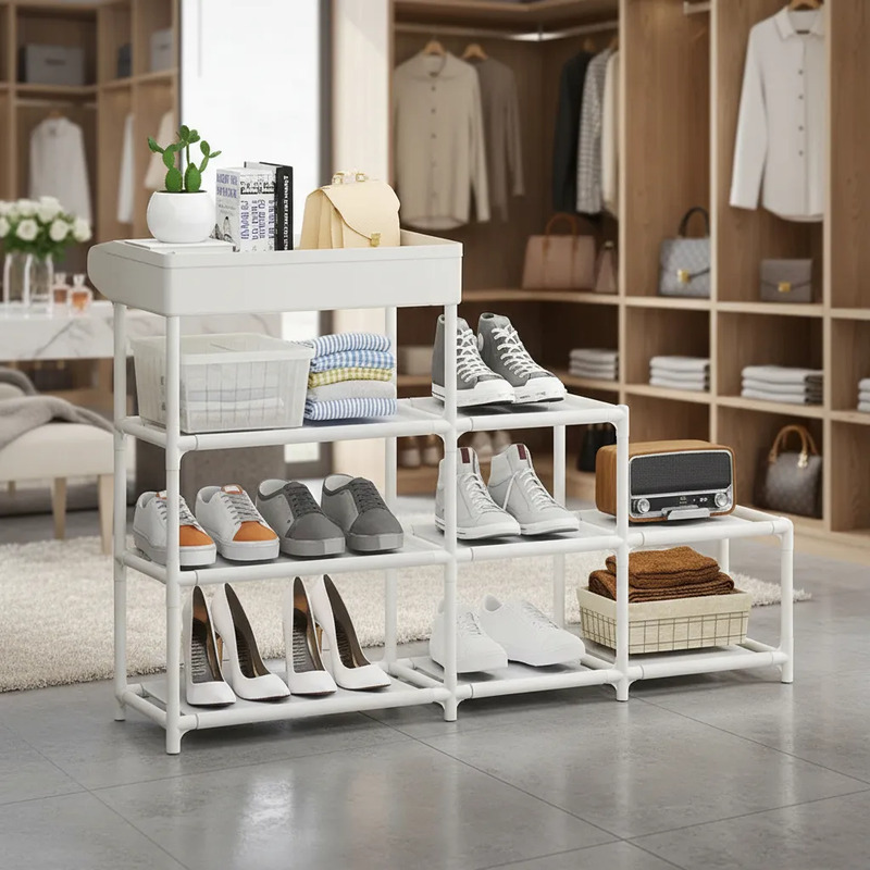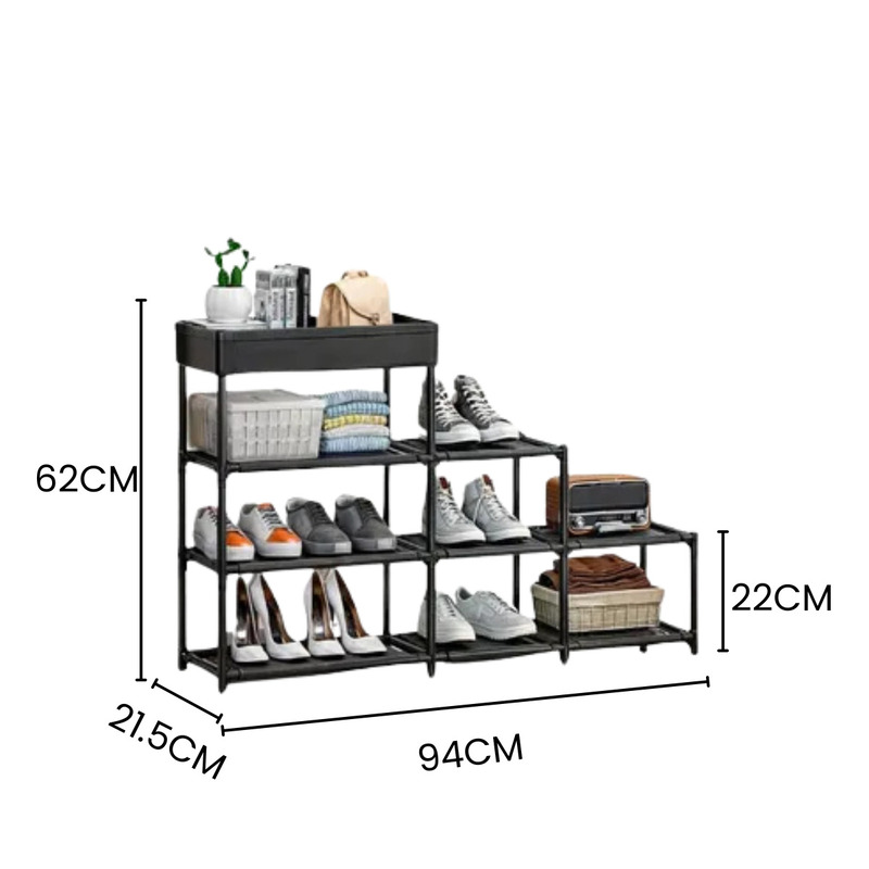 Más espacio entre niveles para guardar desde zapatillas hasta botas sin deformarlas. Ideal para mantener el calzado ventilado y ordenado.